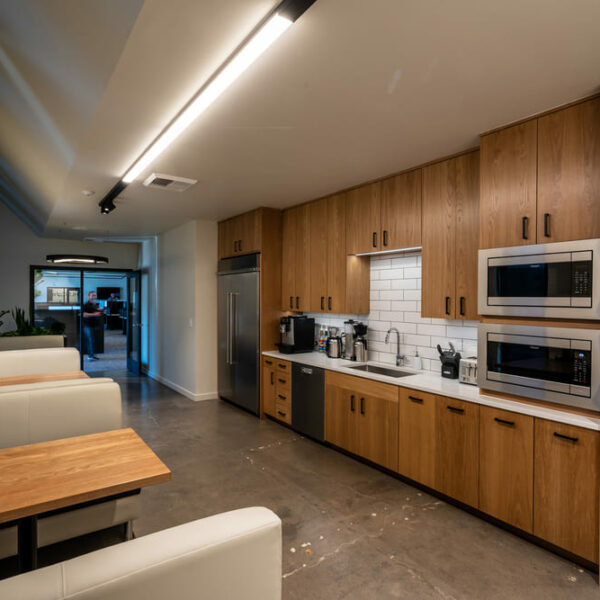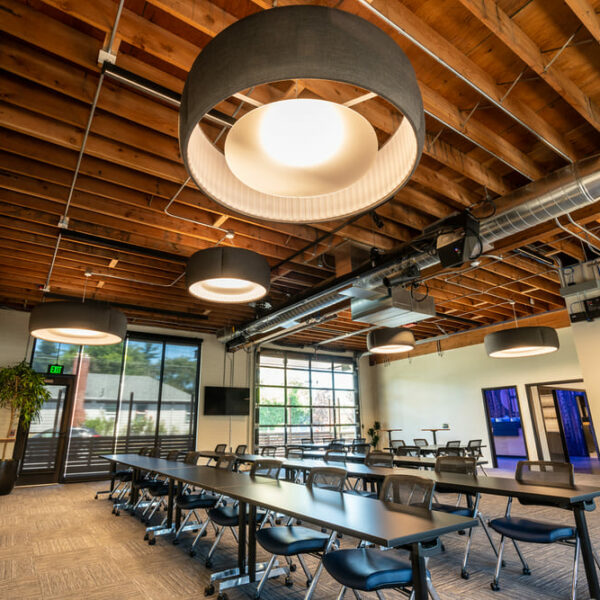 As the new corporate office for this lighting distributor, CDR worked with ownership to deliver not only beautiful modern office space for HLS employees but also an office-wide showroom for brands and fixtures that HLS distributes. The project modernized the inside by exposing ceiling joists and mechanical systems.