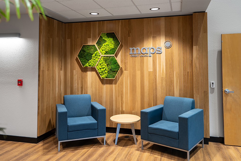 The complete remodel of the four-story Maps Credit Union administration building focused on modernizing infrastructure and enhancing employee experience.