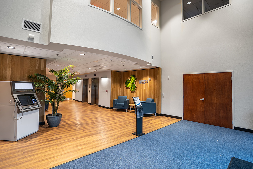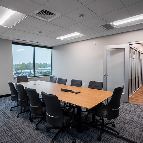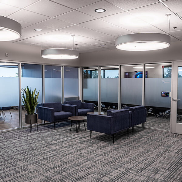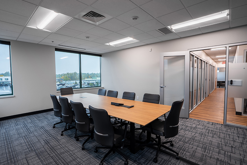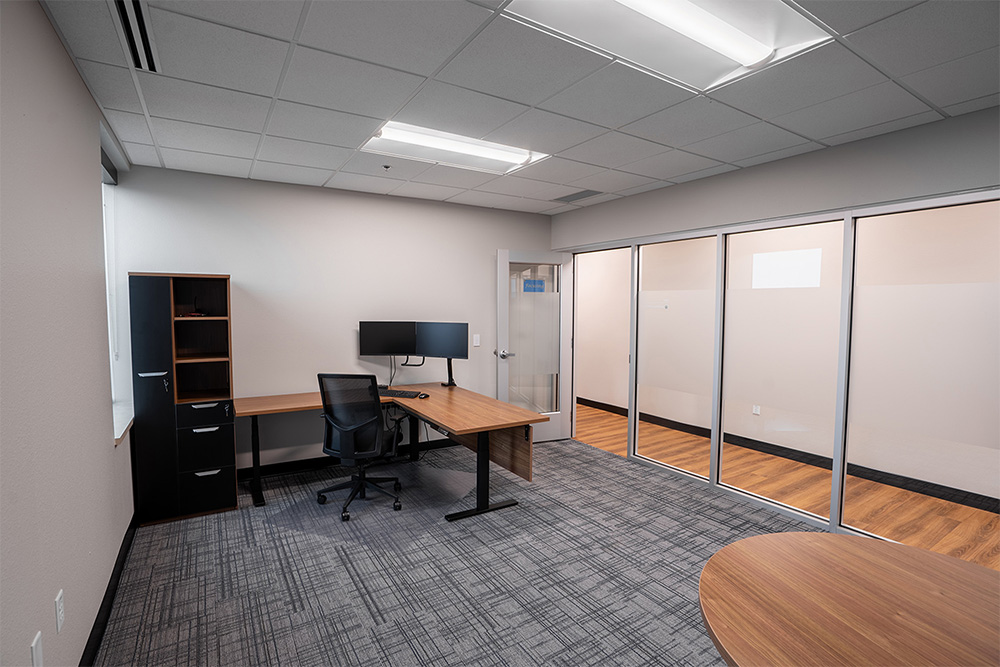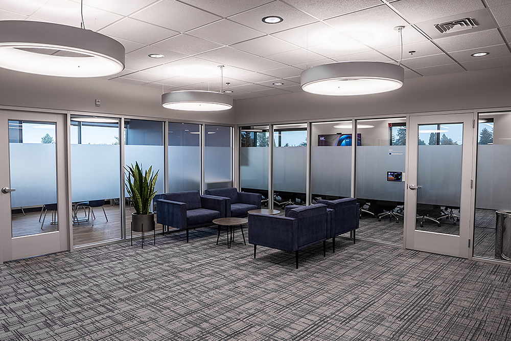 - Several office entrances were upgraded to a sleek modern style which showcases a full-height interior aluminum system with clear tempered glass panels, designed to create an open and inviting transition into the workspace.