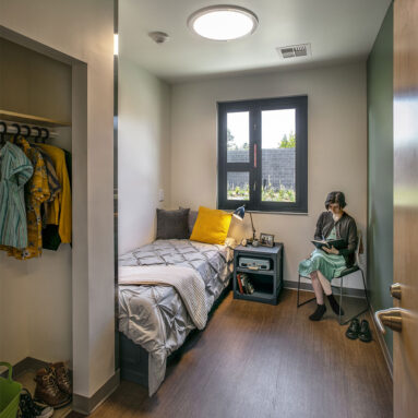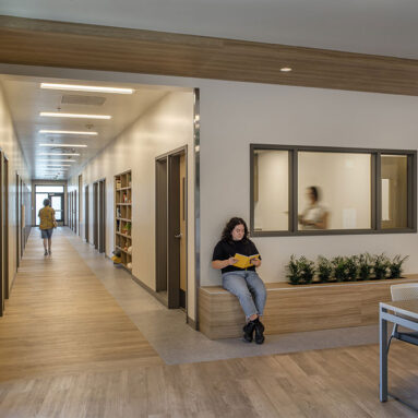 Spanning nearly 12,000 square feet, this state-funded facility features two residential wings and 16 private beds, anchored by a centralized community space designed for healing and connection. The building incorporates advanced ligature-resistant hardware, anti-harm materials, and trauma-informed architecture, ensuring safety without sacrificing warmth or comfort. Designed to blend seamlessly into the local neighborhood, the center aims to reduce homelessness and enhance long-term recovery outcomes.