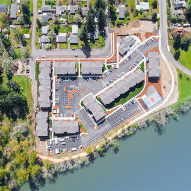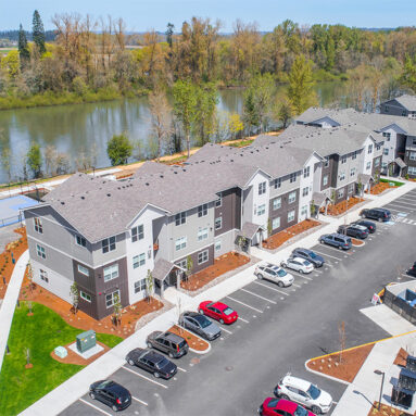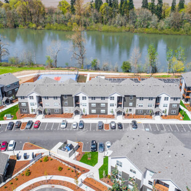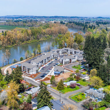 The Banks Riverfront Apartment Homes is located on a spectacular 6.32-acre site with nearly 700 feet of direct Willamette River frontage in Albany, Oregon. Nestled between Bowman Park and Eads Park, this ground-up development consists of 9 buildings totaling 125,546 sf. The Banks offers 120 market-rate studio, one, two, and three-bedroom units, a waterfront pickle ball court, river-facing oversized patios, and decks, locking outdoor storage closets, extra-large windows, 10-foot third-floor ceilings, and sound-minimization construction elements, and a community clubhouse. The clubhouse features state-of-the-art fitness equipment, meeting room, game room, office, kitchen, and lounge area with a double-sided fireplace enhancing the covered outdoor seating area.
