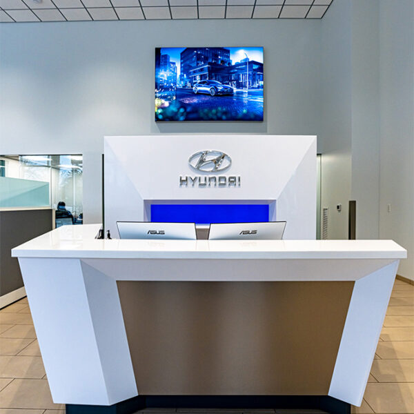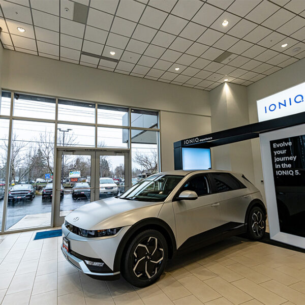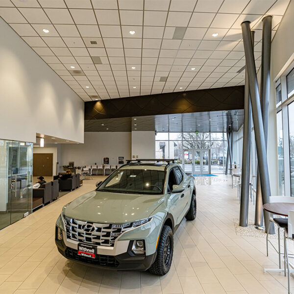 Withnell Hyundai hired CD Redding Construction, a leader in automotive dealership construction, to do a brand upgrade/major remodel of the Mission Street store in Salem. The brand-specific ACM exterior gives the dealership a beautiful custom look. The expanded showroom has a new 120′ x 14′ glass wall storefront system allowing a high level of natural light and greater showroom visibility. The ceilings inside are 18′ with full glass walls giving the sales offices an open floor plan feel. They have also added a covered new car delivery area and an enclosed drive-through service reception area, all adding to the customer experience. This is the second major remodel of the Hyundai dealership since the Withnell Motor Company has owned the brand.